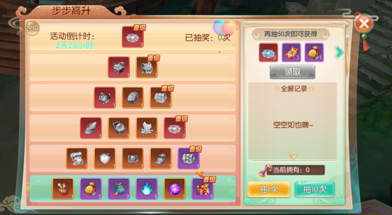 活动介绍:活动期间进行步步高升可以获得稀有道具-玄.天域玄冰碎片,更有其他极品道具等你拿!